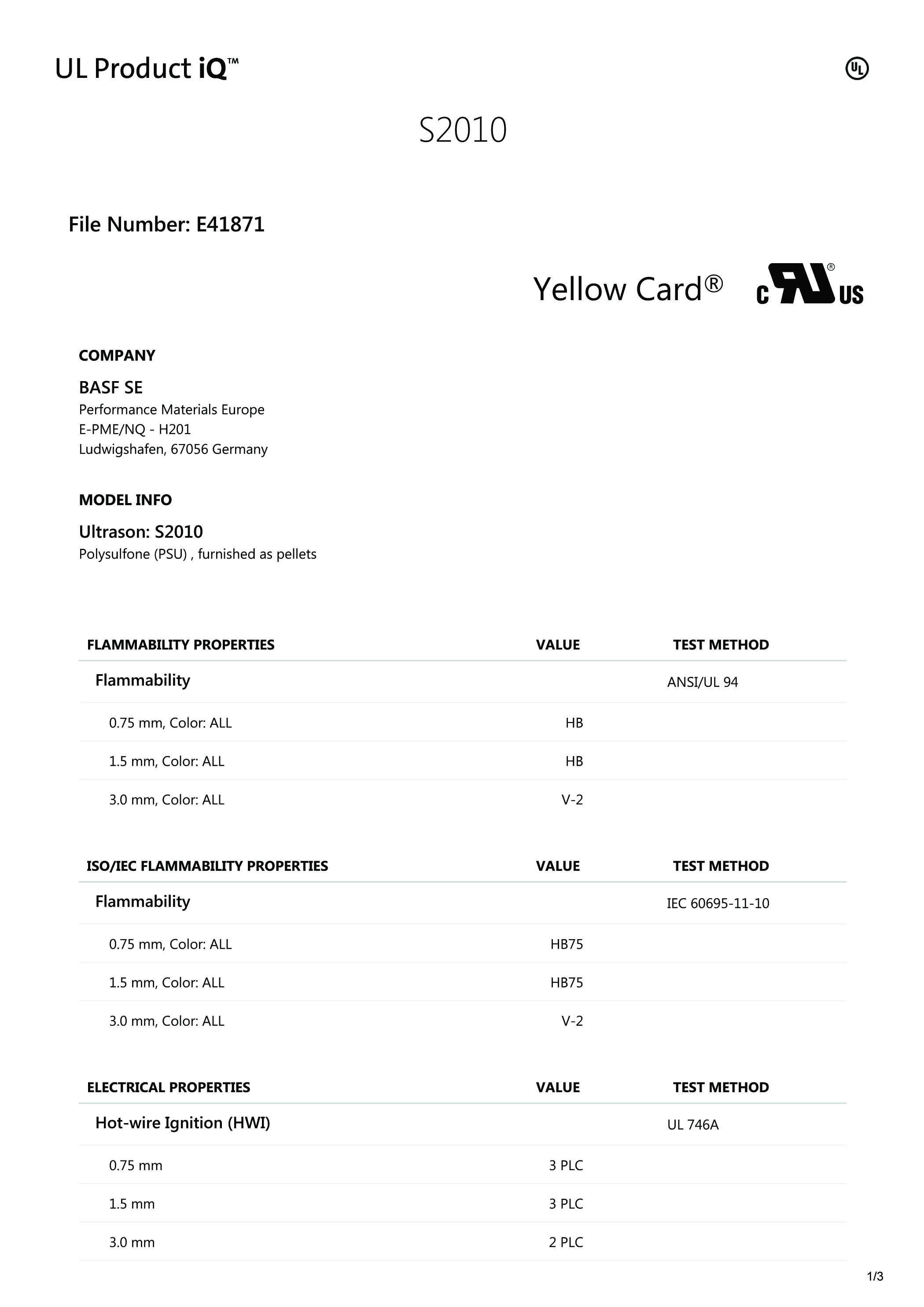 特种工程塑料/Special Engineering Plastics - 德国巴斯夫公司 PSU